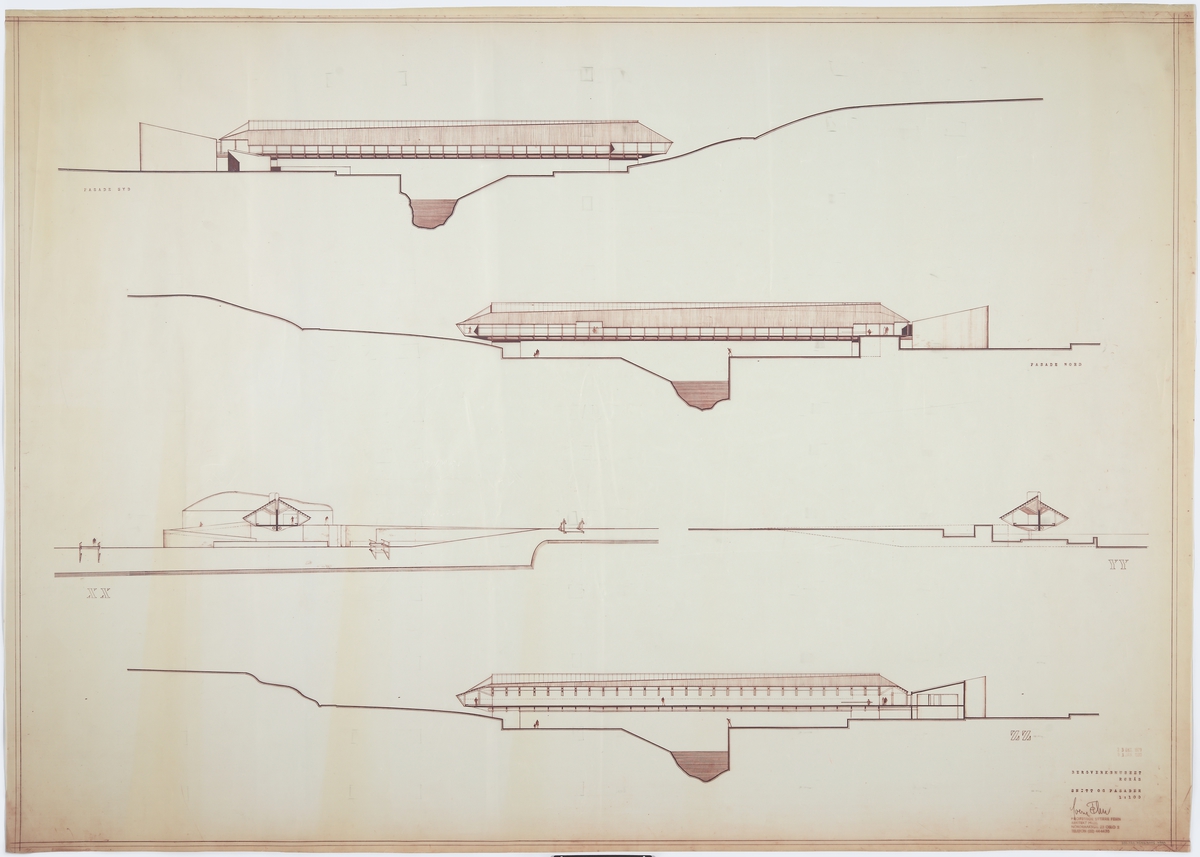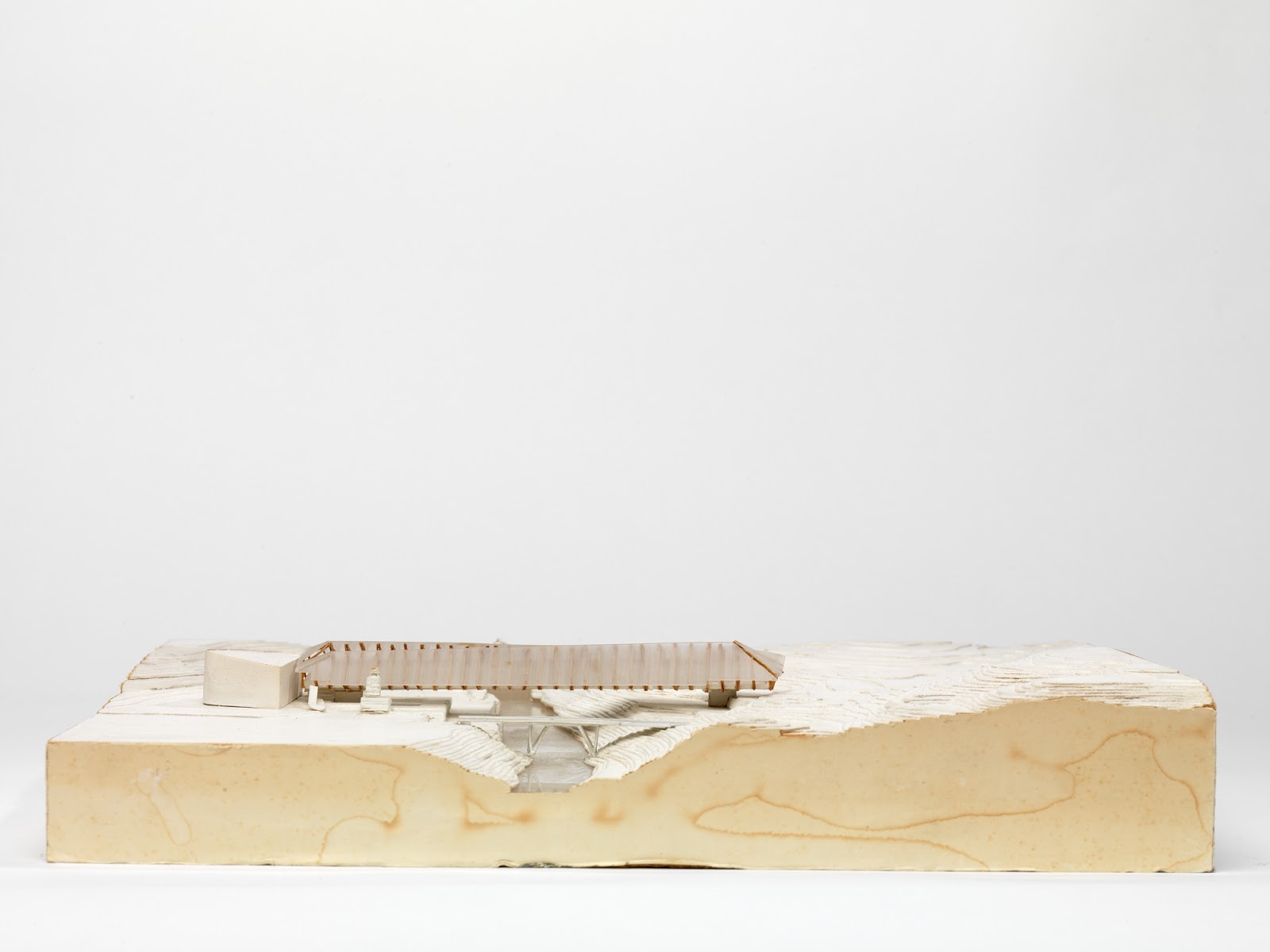 “This project reveals a strong relationship between light and structure that in turn indicates the possibility of a unique space. There is nothing to add or to take away; the architecture is complete. The single line of the building has an architectural complexity that finds its expression in a precise, tapering sructural repetition, and its urban image is set as a spatial bridge that forms the museum. As a span, it connects two distinct site features: the open plains of the highlands and the silver-mining town of Roros. It straddles the open landscape but reflects the urban activity of the town.“