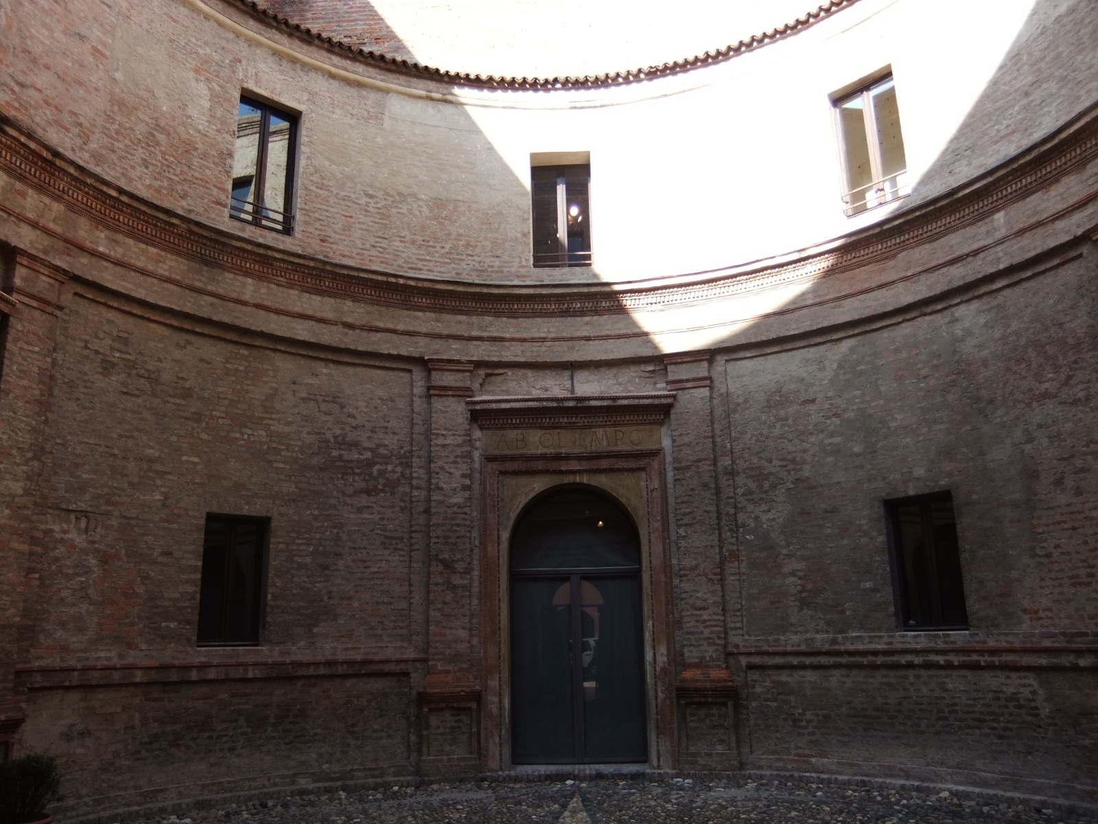 The Mantegna House (Casa del Mantegna) is defined by the geometry of his courtyard. A two floors´ cylinder intersects with a square of one floor to achieve the “squaring of the circle” in the courtyard. The interior windows follow the geometry of this cylinder having a small curvature.
