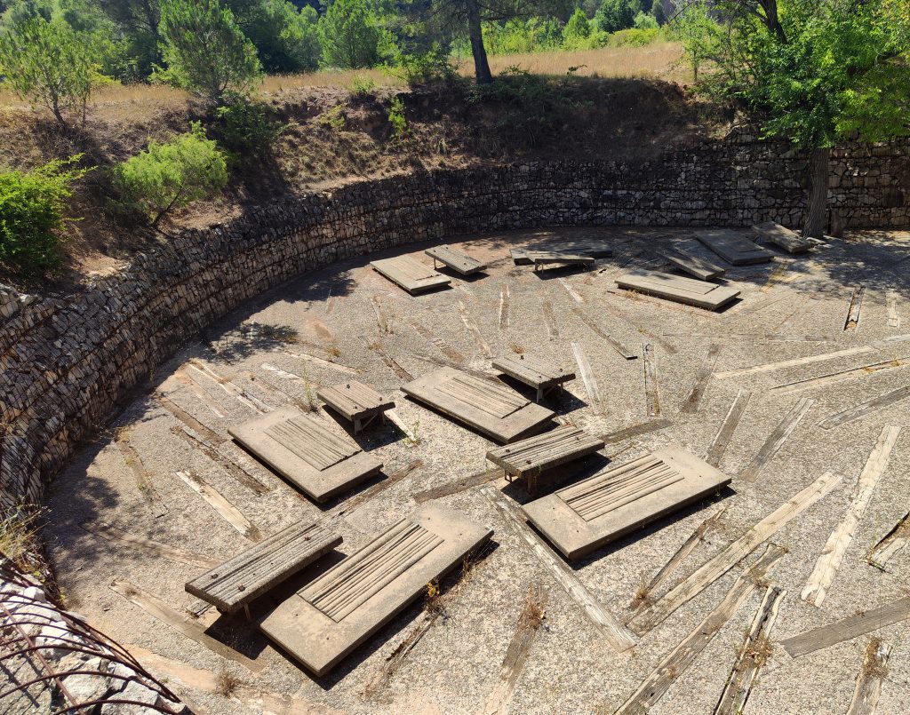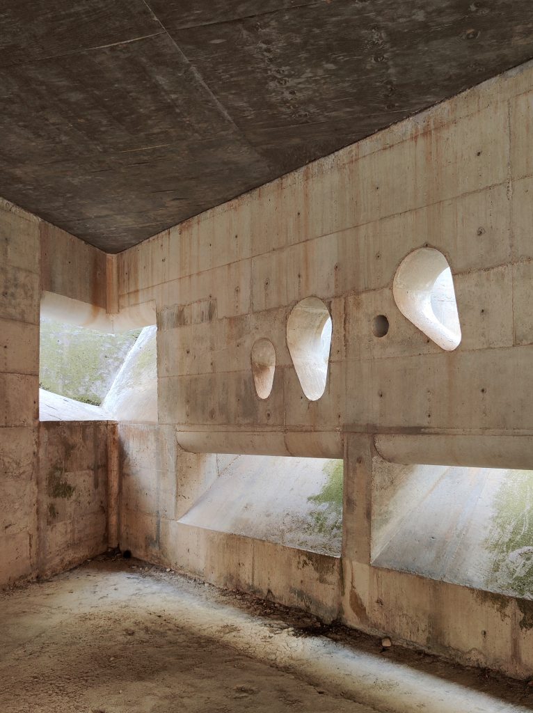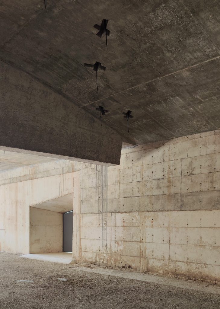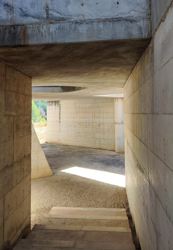 Superimposed on the rhythm of the seasons are ritual ceremonies, which take place according to their own calendar. The chapel, which also serves as a vestibule and entrance, leads to the funeral parlour chambers. A small staircase leads us to the different levels. At this point, the coffin is placed in one of the burial chambers. After the funeral ceremony, the procession moves to a round platform. Steps, stones, and corners along the way give it a labyrinthine character. Each point has its meaning, all with equal importance, without hierarchy.