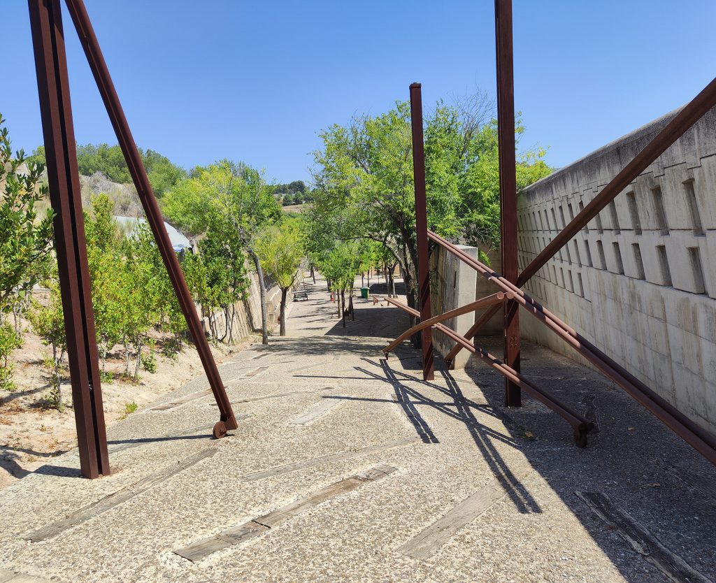 I remember the first thoughts I put down on paper for the design of the Igualada cemetery. At that time, I had the idea of working on the surrounding landscape, which until then had been used for agriculture, in such a way that it resembled a canal cutting into a field, eroding it. Through excavation, I was able to hollow out the landscape much faster than the natural process itself. This artificial erosion accelerated the passage of time. On the other hand, the cut made cannot escape time, as its appearance determines the natural growth rate of the new trees. It will not be until their trunks have grown and their crowns have fully developed that they will visually seal the incision and, in a way, reconstruct the original level of the terrain. The entire cemetery will then seem to disappear underground, forming a kind of mass grave, covered by a green tombstone.