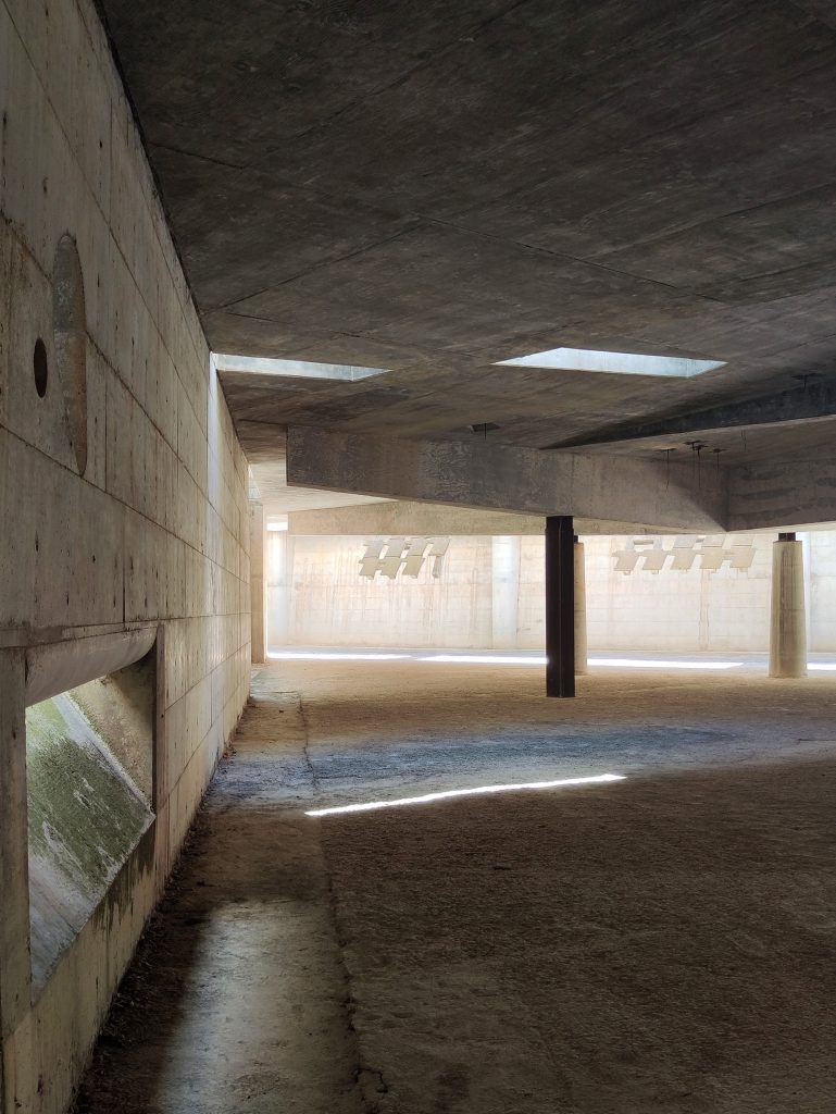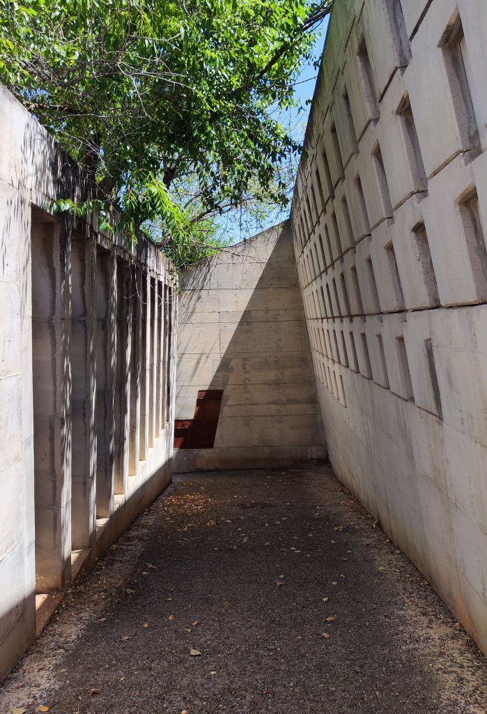 The way in which different states of time are expressed through shapes is perhaps one of the most important insights I gained from the Igualada project. For example, I chose an extreme zigzag geometry for the cemetery’s layout so that its radical and abstract shapes would differentiate it from the layout of a town, which is constructed according to very different rules. This radical geometry was shown to leave visitors with the impression of moving through a timeless space. The incision represents absolute time, while its different details materialise the measurable flow of time: the small almond trees between the cars at the entrance, the laurel bushes along the access ramps, the bare earth in front of the different buildings, the small shrubs and the different types of poplars that seal the incision in the ground with their small, silvery leaves. The slightest breeze makes them move and shine in the sun. Then the ground covered with mass-produced cement, in which old planks have been submerged, reminiscent of driftwood carried by the river, seems to be sliding downhill. Time can be perceived in all these elements as their appearance is altered by the changing position of the sun throughout the day and the year. These things are familiar to us, they give us orientation. By this I mean that we can obtain different forms of nature, those connected with time, and those that are outside of it.