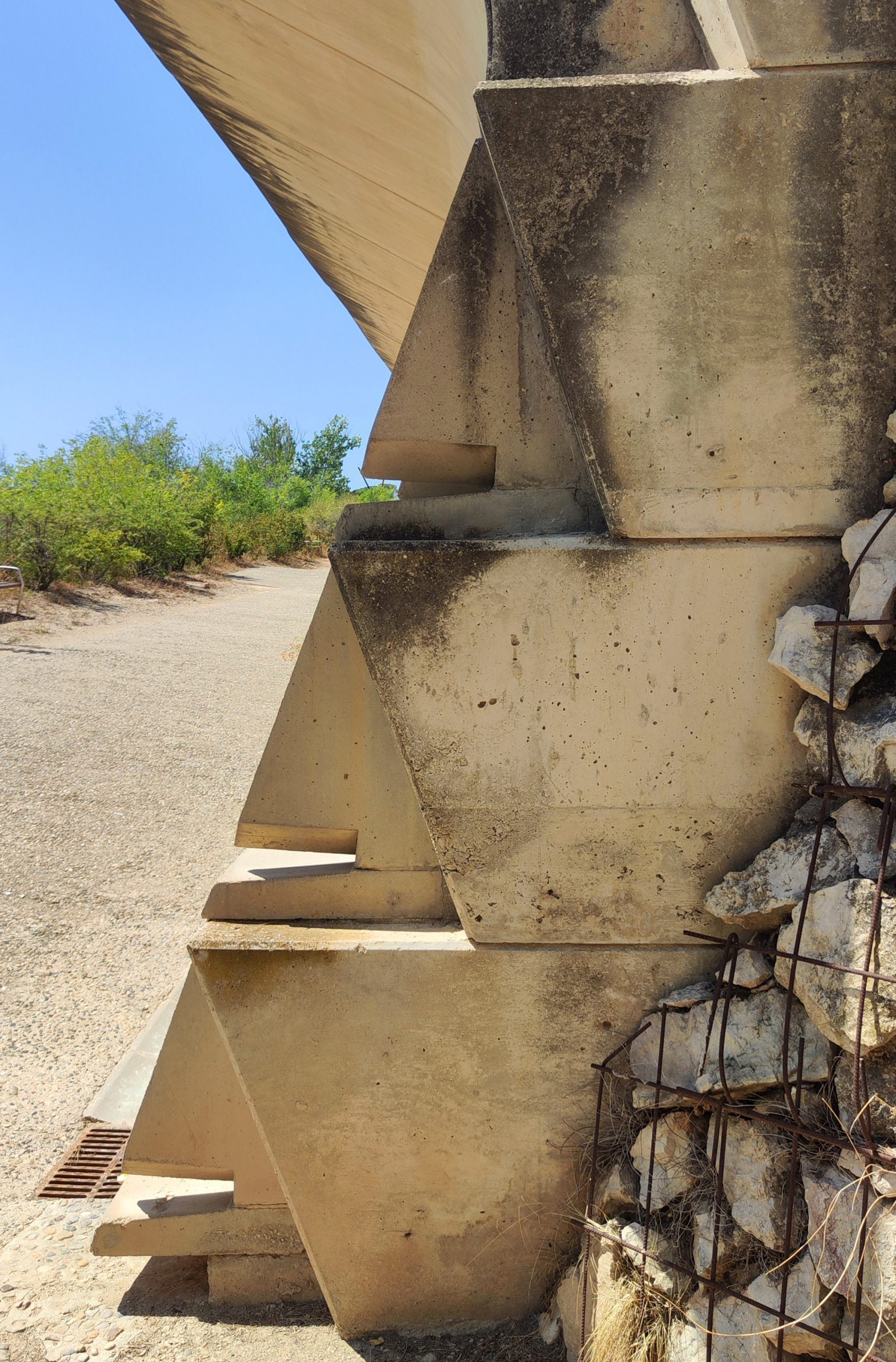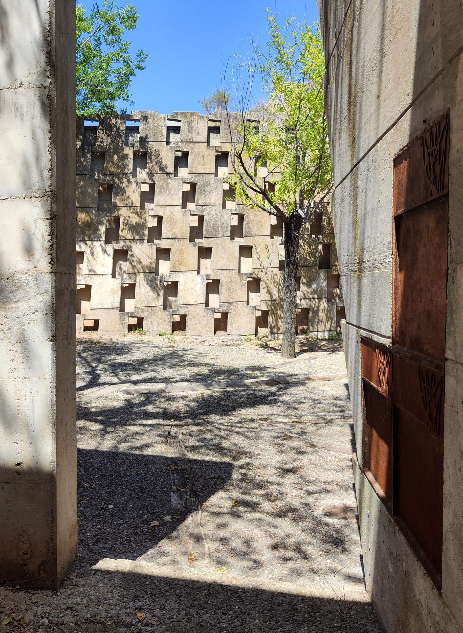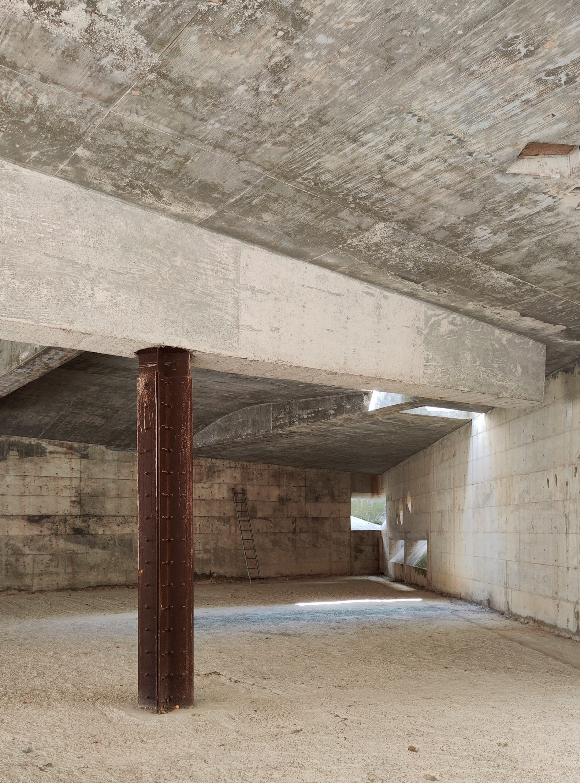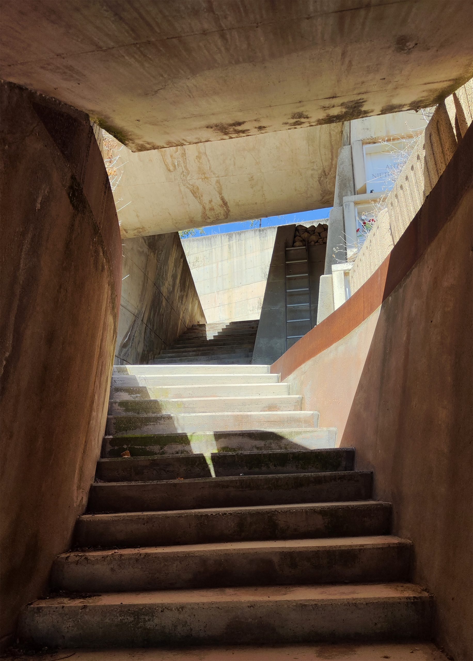 The way in which different states of time are expressed through shapes is perhaps one of the most important insights I gained from the Igualada project. For example, I chose an extreme zigzag geometry for the cemetery’s layout so that its radical and abstract shapes would differentiate it from the layout of a town, which is constructed according to very different rules. This radical geometry was shown to leave visitors with the impression of moving through a timeless space. The incision represents absolute time, while its different details materialise the measurable flow of time: the small almond trees between the cars at the entrance, the laurel bushes along the access ramps, the bare earth in front of the different buildings, the small shrubs and the different types of poplars that seal the incision in the ground with their small, silvery leaves. The slightest breeze makes them move and shine in the sun. Then the ground covered with mass-produced cement, in which old planks have been submerged, reminiscent of driftwood carried by the river, seems to be sliding downhill. Time can be perceived in all these elements as their appearance is altered by the changing position of the sun throughout the day and the year. These things are familiar to us, they give us orientation. By this I mean that we can obtain different forms of nature, those connected with time, and those that are outside of it.
