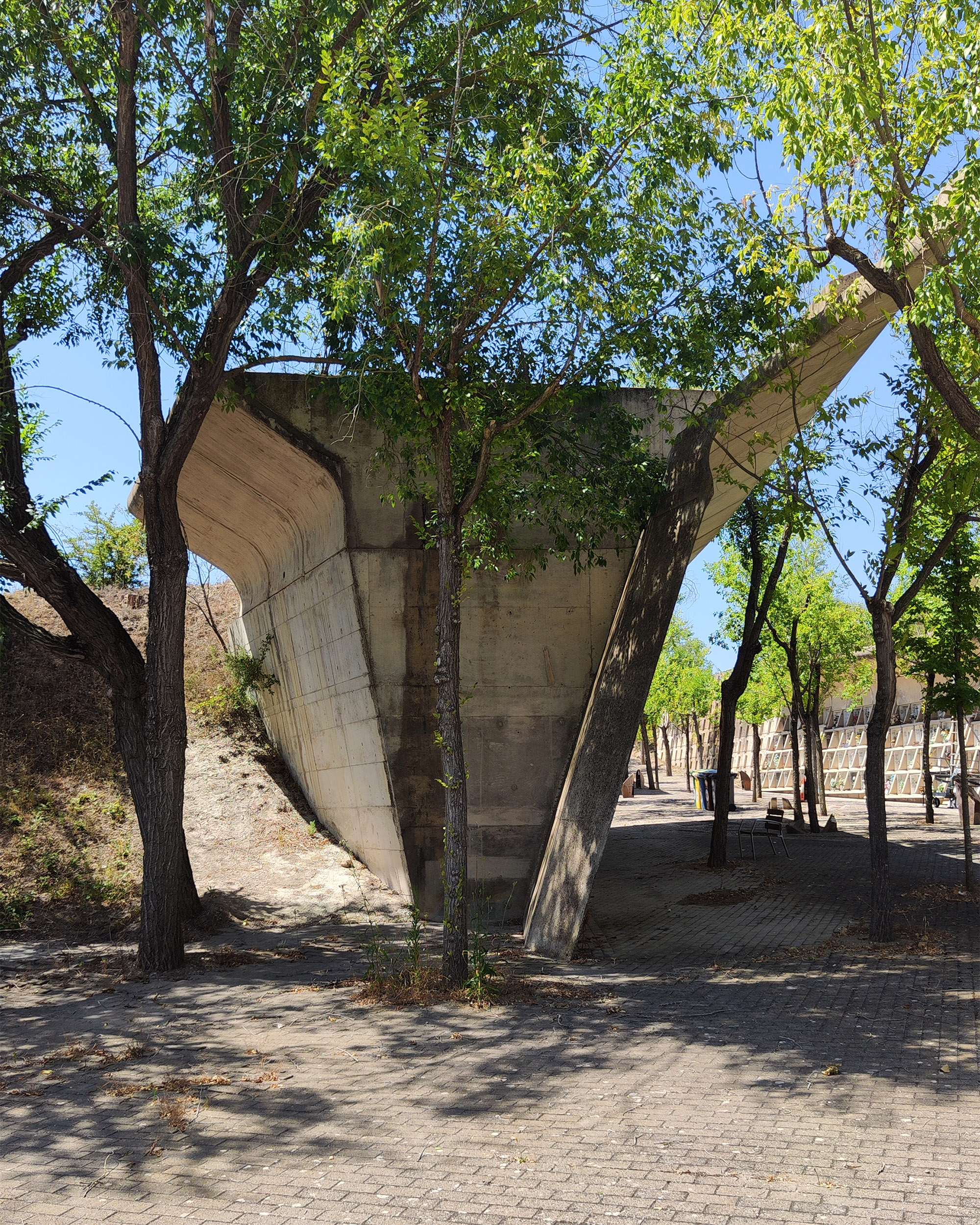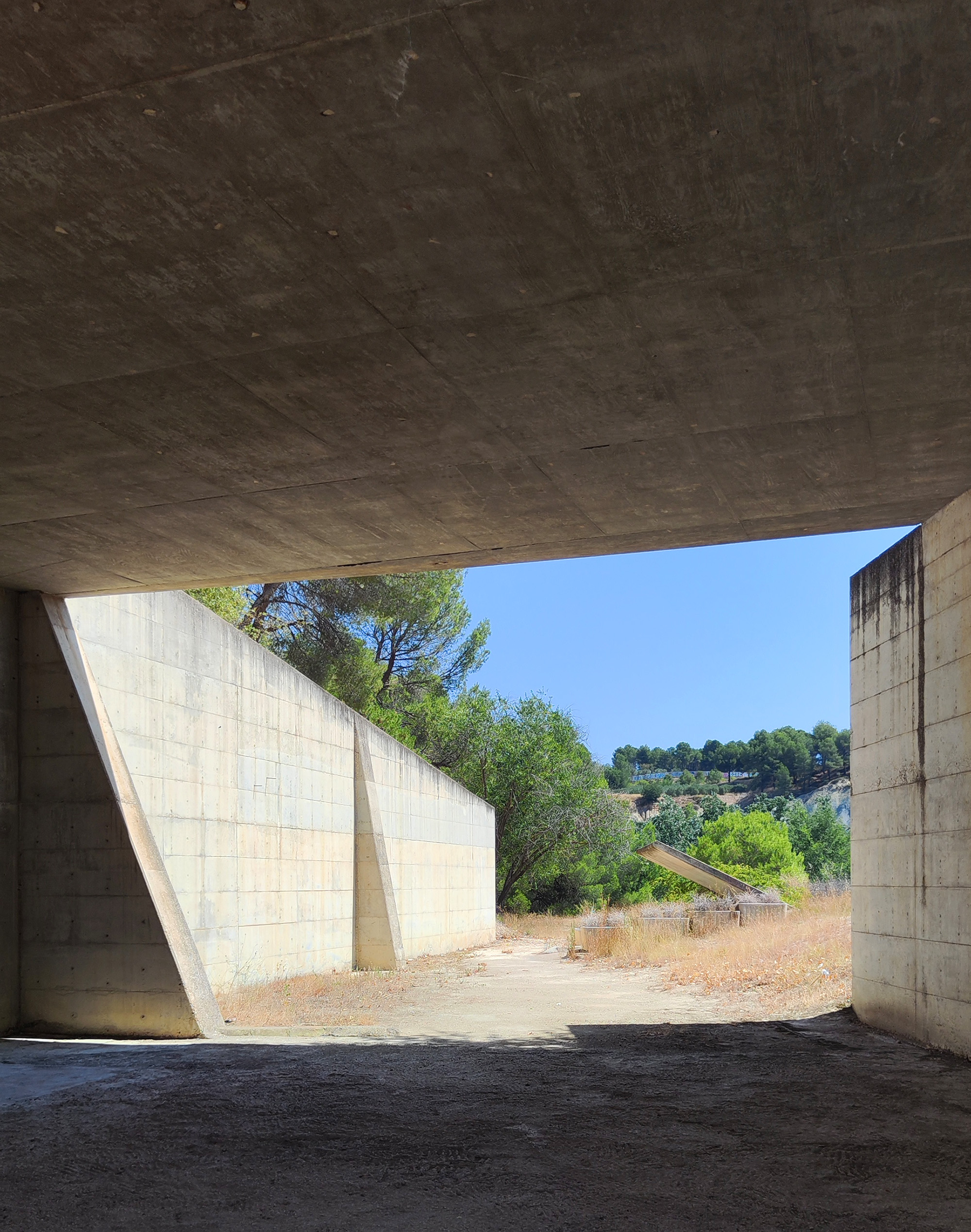 I remember the first thoughts I put down on paper for the design of the Igualada cemetery. At that time, I had the idea of working on the surrounding landscape, which until then had been used for agriculture, in such a way that it resembled a canal cutting into a field, eroding it. Through excavation, I was able to hollow out the landscape much faster than the natural process itself. This artificial erosion accelerated the passage of time. On the other hand, the cut made cannot escape time, as its appearance determines the natural growth rate of the new trees. It will not be until their trunks have grown and their crowns have fully developed that they will visually seal the incision and, in a way, reconstruct the original level of the terrain. The entire cemetery will then seem to disappear underground, forming a kind of mass grave, covered by a green tombstone.