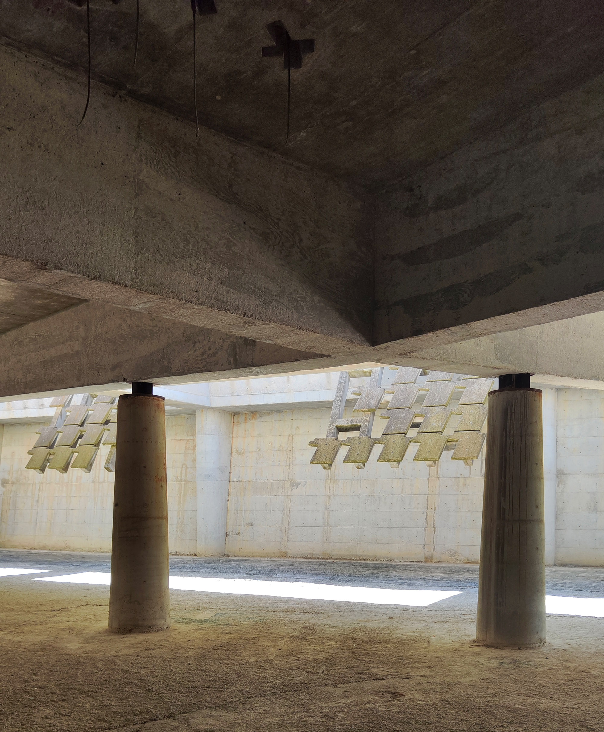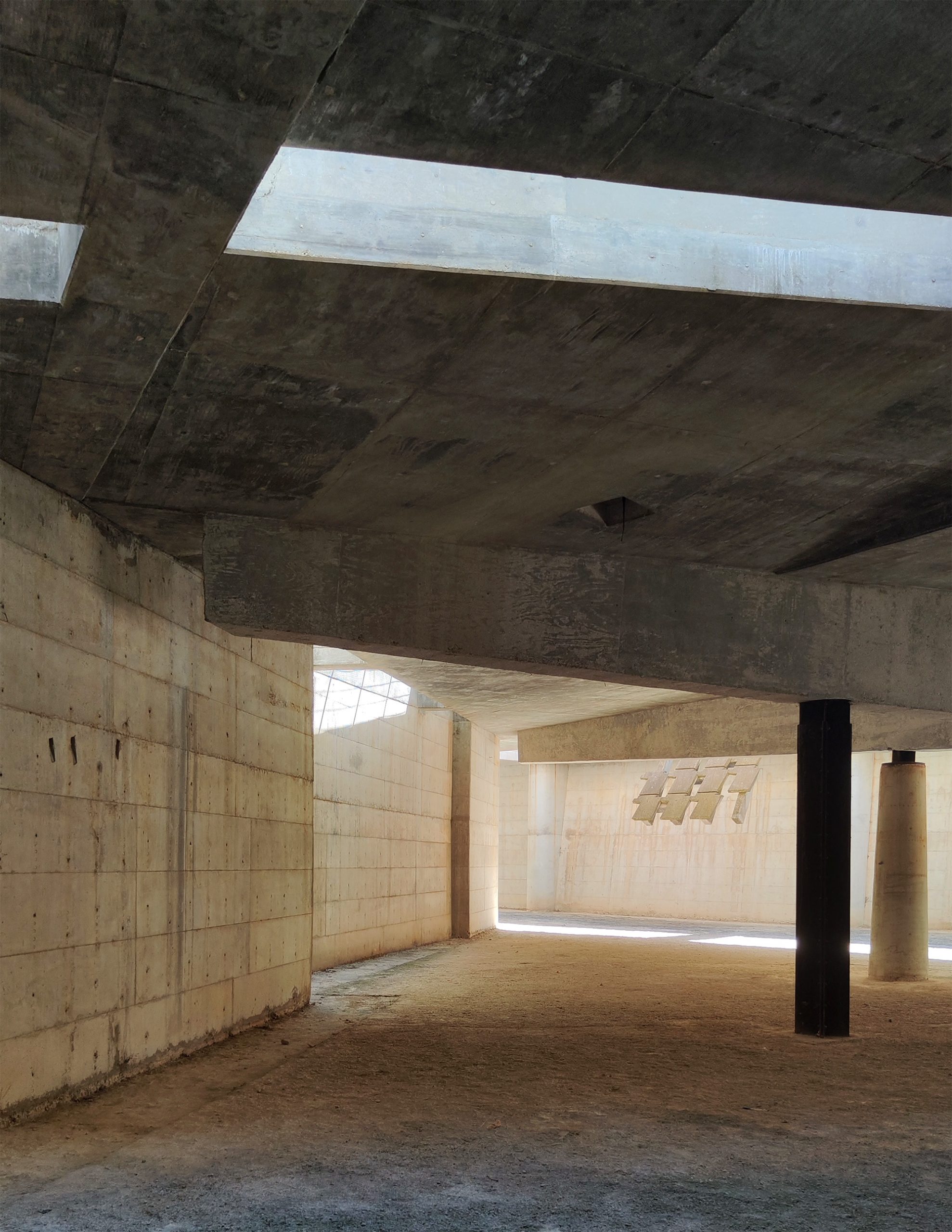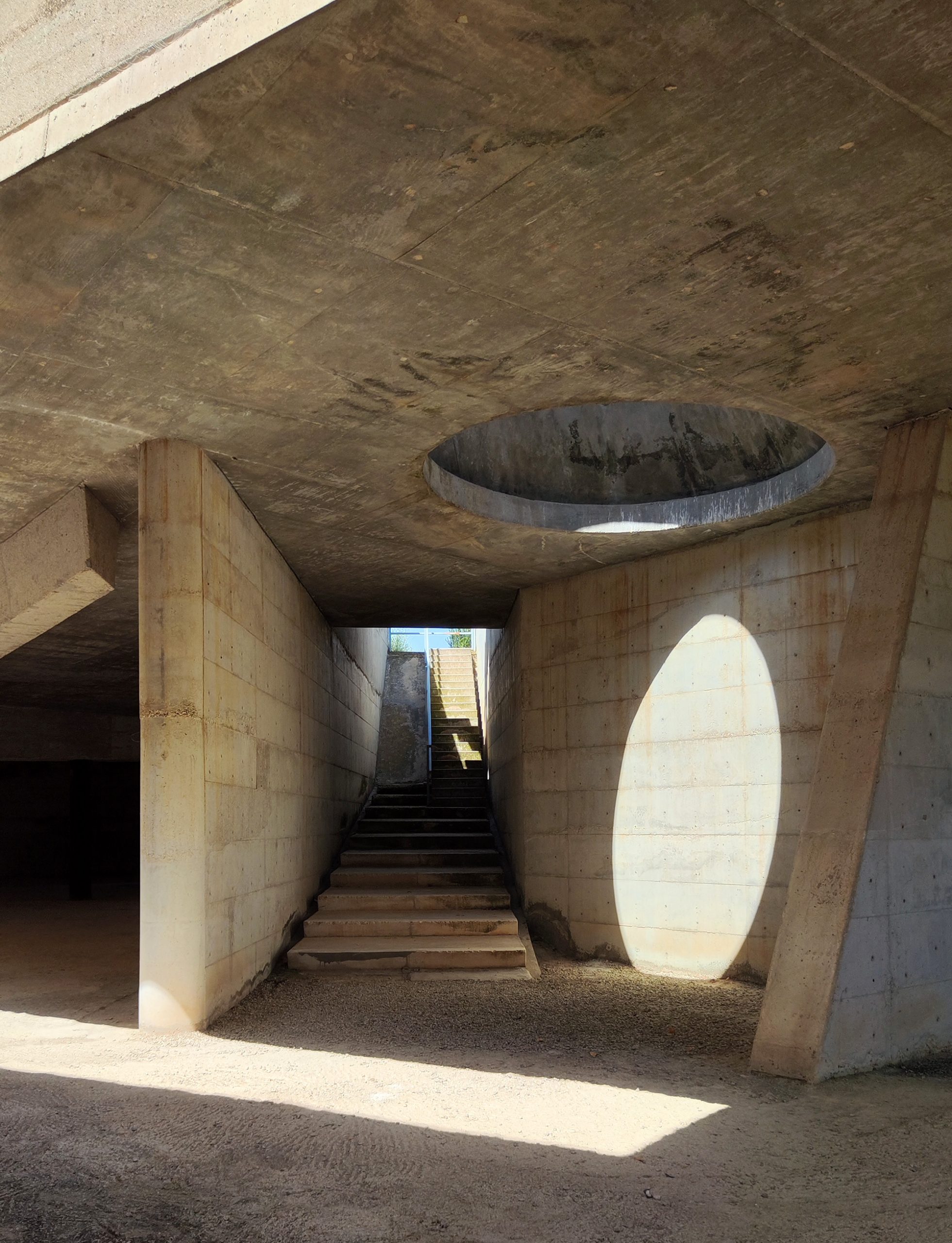 Superimposed on the rhythm of the seasons are ritual ceremonies, which take place according to their own calendar. The chapel, which also serves as a vestibule and entrance, leads to the funeral parlour chambers. A small staircase leads us to the different levels. At this point, the coffin is placed in one of the burial chambers. After the funeral ceremony, the procession moves to a round platform. Steps, stones, and corners along the way give it a labyrinthine character. Each point has its meaning, all with equal importance, without hierarchy.