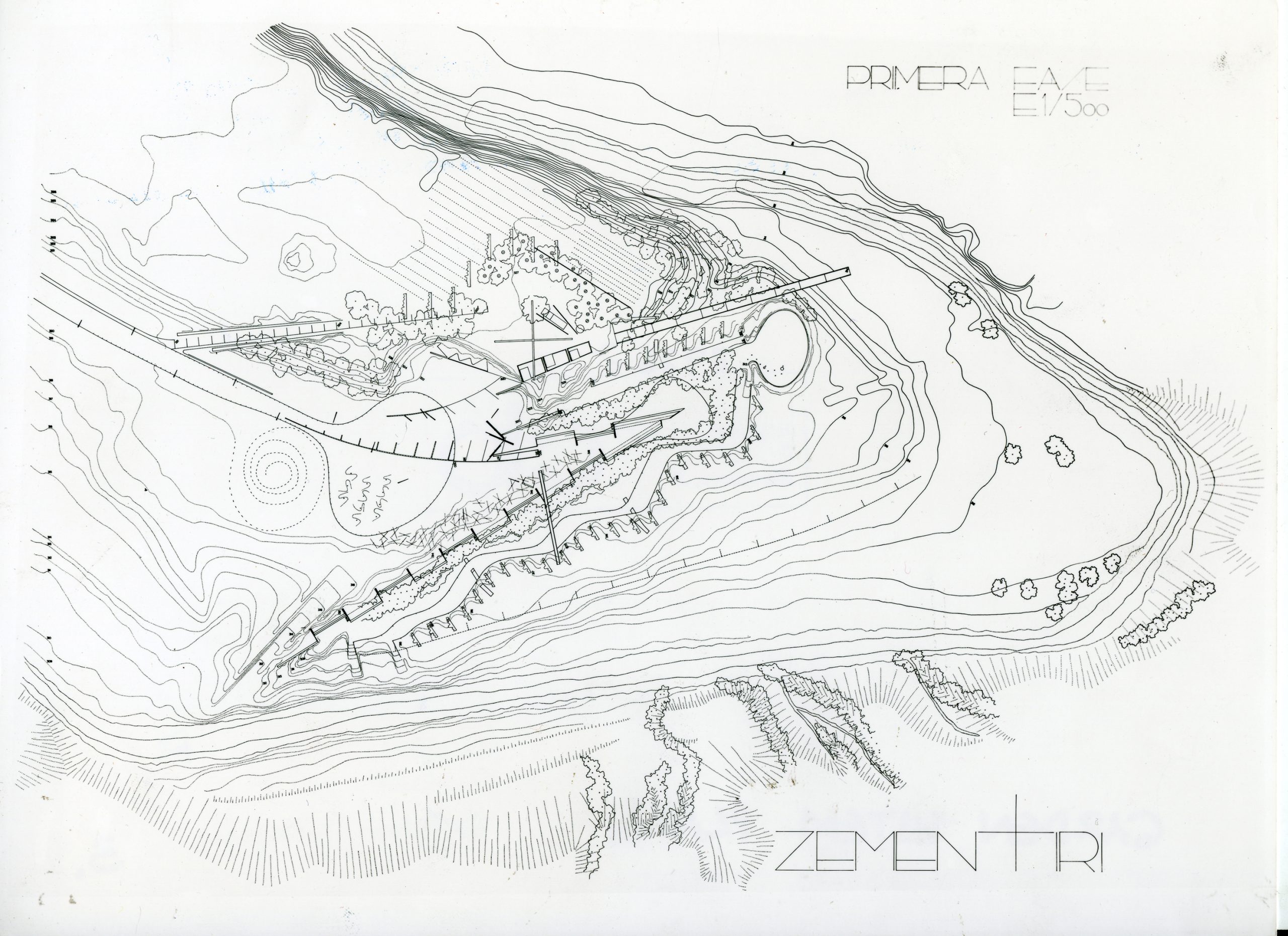 Drawing is a way of thinking, or at least an activity that accompanies thinking. Perhaps it is only our consciousness that forces us to concentrate on a piece of paper and, in doing so, to reach a motionless, static state, which will then be apparent in the constructed designs. However, many elements in the Igualada cemetery contradict this norm; they express movement, invite digression: the eroded furrows in the earth, their zigzag geometry, the tortuous curve of a stream’s tongue.