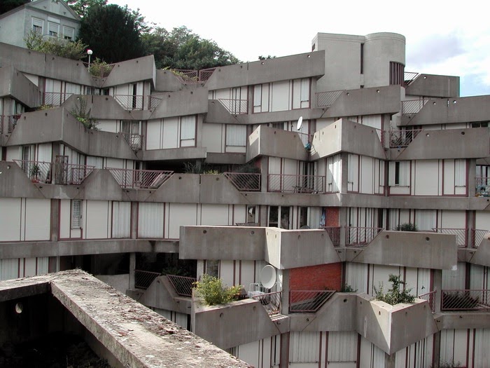 “In my opinion, Jean Renaudie is one of the very best French architects of the last fifty years. His two housing complexes in Ivry sur Seine near Paris (…) and in Givors near Lyon are two very successful examples of architecture becoming urban in an era (50’s-60’s) that created what is now famous as the French suburbs catastrophe. In fact, those two housing complexes are extremely interesting in the fact that they embody a real urban density, mix several social levels, organize urban life on a multitude of storeys, blur the limits between private and public areas and supply a little piece of garden to every apartment. This architecture is full of episodes, surprizing moments of beauty in