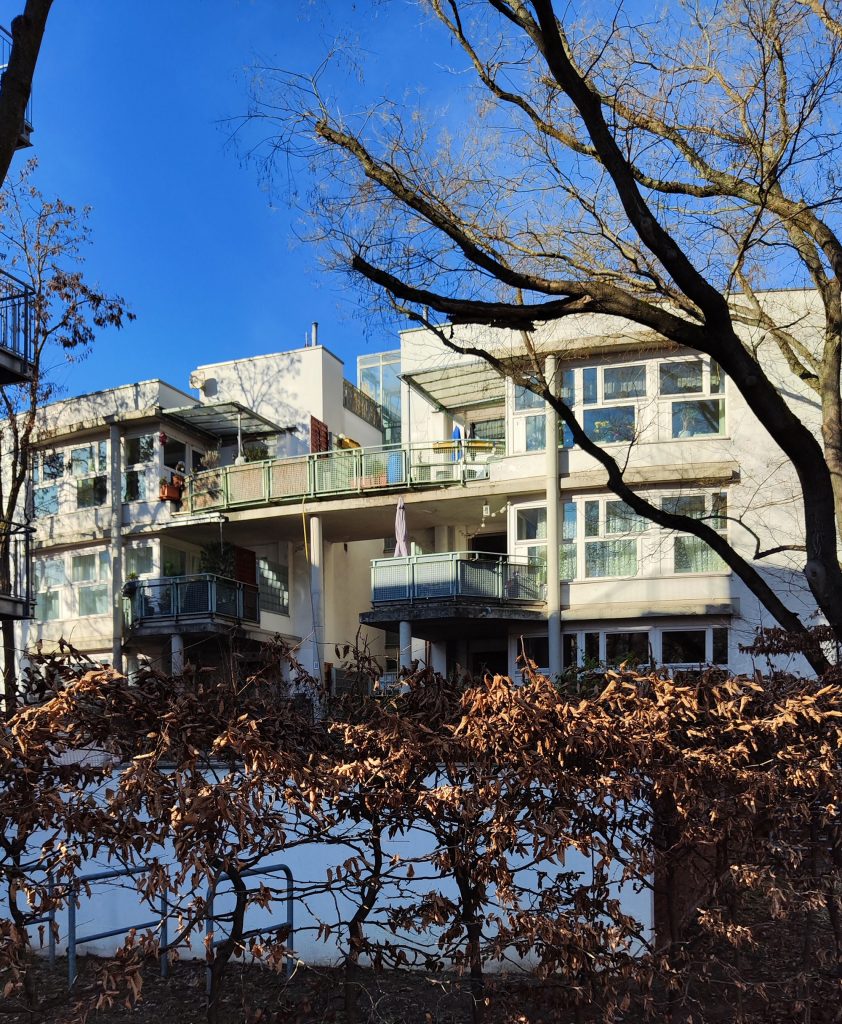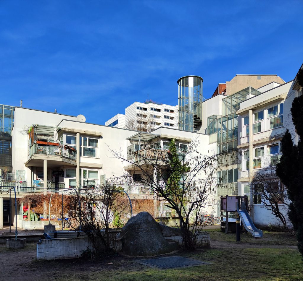 El proyecto se ubica en un terreno triangular entre Lindenstraße al este y Markgrafenstraße al oeste (de ahí LiMa), que también cuenta con una iglesia existente en la esquina sur en ángulo y viviendas existentes al norte a lo largo de ambas calles. El plan adopta la forma de un muro escalonado de viviendas que conecta los dos bloques de viviendas existentes al norte, encierra así el patio entre ellos, y un anillo semicircular de viviendas que envuelve el lado sur del terreno, formando un nuevo patio semicircular y permitiendo que la iglesia existente siga siendo una estructura independiente del tejido de viviendas.Las siete escaleras con paredes de vidrio y techo que unen los pares de viviendas de tres plantas se experimentan como calles verticales, que conducen a las entradas de los apartamentos y a las terrazas comunes cubiertas de vidrio en la azotea, y a pasajes urbanos horizontales a nivel de calle en la tradición de las arcadas europeas del siglo XIX con techo de vidrio, como la favorita de Hertzberger, el Passage des Panoramas de París.