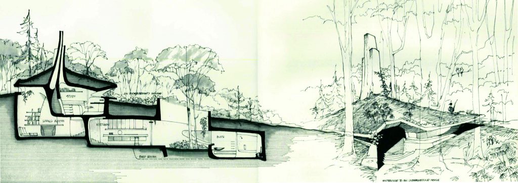 “And houses: how would you build them?” Underground, or at least partially underground, with openings onto sun courts, and gardens brimming with trees and plants—Nature—covering most of their surface area.