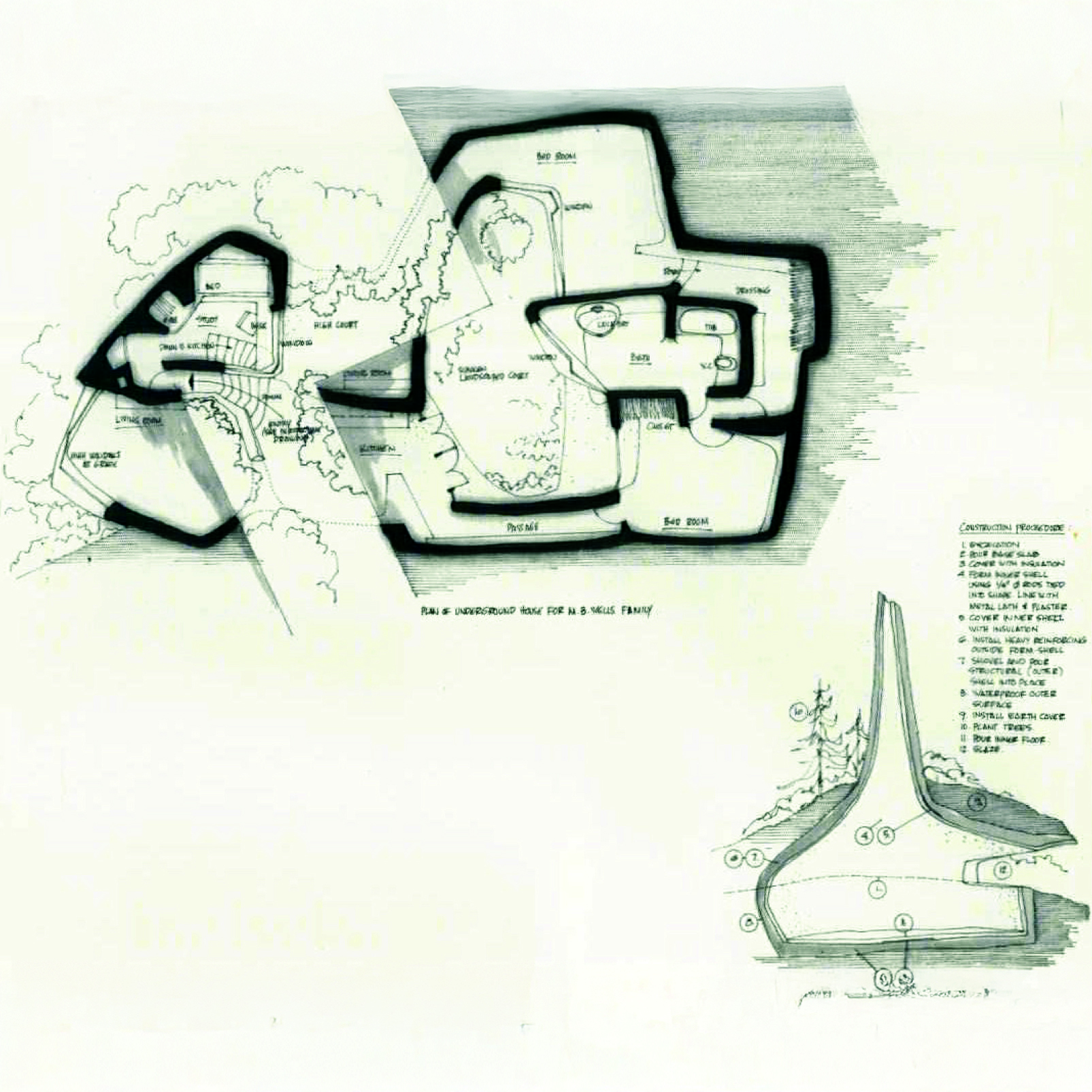 I have checked and prodded this idea of underground construction from every angle, and still find only the mildest objections. One, of course, is the problem of water and dampness. But there are rooms 50 feet underground, today, dry as bones. And if a site seems juicy, we can build above ground, then cover it with earth and trees—a man-made hill! Ventilation is no problem; compared to the ventilation of a mountain tunnel, or a high-flying jet. It is child’s play. Cost is an unavoidable problem in structures built to carry 4 to 10 feet of earth. But what a shame if mankind’s epitaph should read: They found the right way too expensive.
