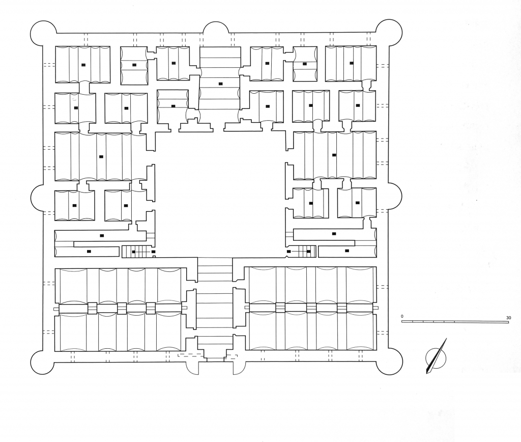 The caravanserai, defined by its architectural elements and function, had an inherent contradiction: on one hand, it facilitated trading, exchange, and movement; and on the other, it was designed as a space of enclosure and seclusion. It was an independent, autonomous machine equipped with all the necessary functions, completely isolated from the outside, the unorganized, lawless realm. It was a living wall that organized the collectivity through a series of rules. Once the merchants crossed the main doors, they had to accept the regulations imposed by the head of the caravanserai. The caravanserai determined who could enter and under what terms.