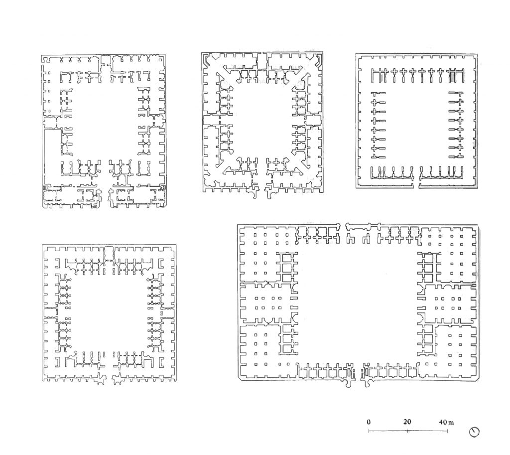 The defensive character of caravanserais on the outside contrasted with the splendor of the interior. Beyond providing food and rest, these places offered travelers the opportunity to exchange goods with other merchants. Symbolically, this building type functioned like a small city, governed by its own internal rules that shaped how guests interacted with one another. The austerity of the exterior gave way to a fertile, cultivated patio and even garden within. This architectural typology — an austere outer wall enclosing a habitable interior and a central courtyard like an oasis — appears repeatedly across Islamic architecture. It reveals, once again, the importance of architecture as a means of defining boundaries—physical and political.