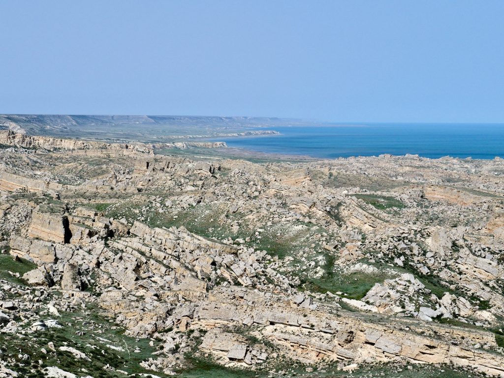 La región de Mangystau se encuentra en la parte oriental de Kazajistán, frente al mar Caspio. Es una tierra desolada y olvidada cuyo paisaje evoca un antiguo océano, en el que la estepa se ve interrumpida por repentinas depresiones del terreno en las que se pueden encontrar las erosiones rocosas y los lagos salados más oníricos.