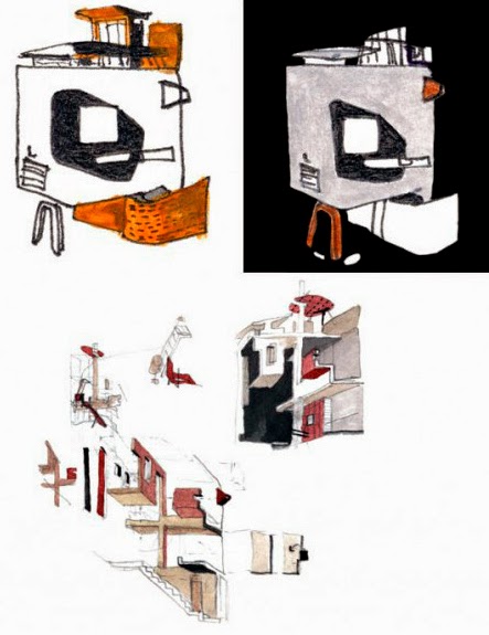 A house with a child’s room suspended within.