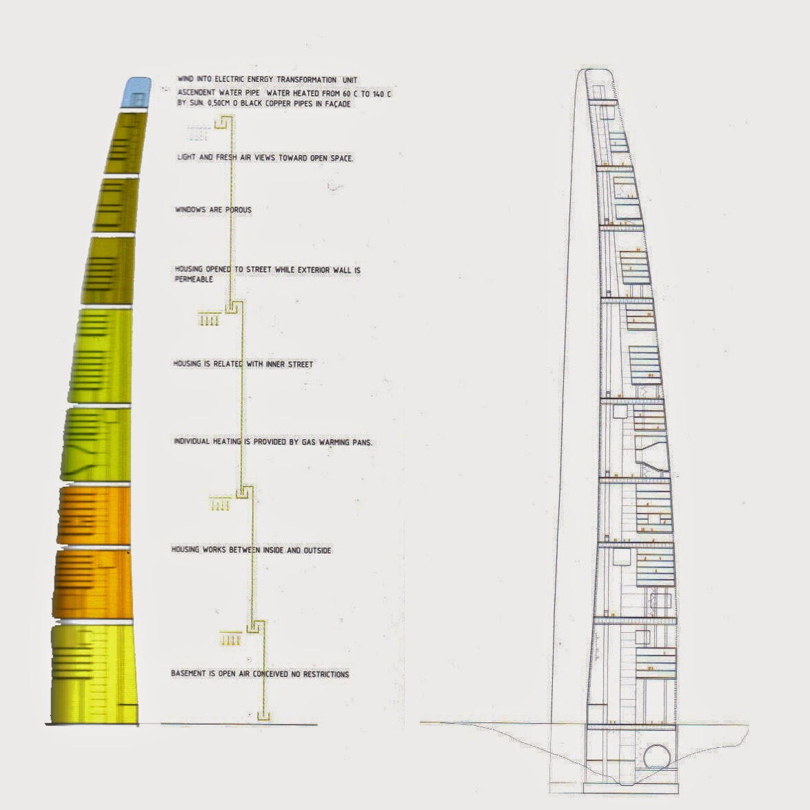 One of the first projects of Cristina Diaz Moreno with other architects, before establishing her own practice Cero9, was the Vertical Village Uluru. This proposal showed the intersection of some of the ideas that many architectural practices were working during the 90s in Europe with her own interests that she would lately develop with Efren Garcia Grinda. They worked with the concept of vertical city and urban hybrid. Other architects have already developed similar proposals such as MVRDV with the Berlin Voids project. Moreover, they also started to lay out some theory about urban landscape using nature (the mountain Uluru) or concepts more related with the use of energy (the optimization of the silhouette of the tower to support wind forces).