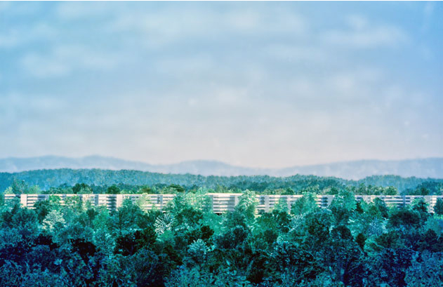 The parking is built at each of the four levels of offices and is approached by ten roadways on each end. The arriving employee can drive directly onto the floor where his or her office is located and walk less than 150 feet from car to office.