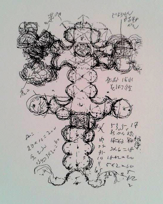 This unusually shaped museum is located on the densenly wooden lower slope of Mount Yatsugatake, near the village of Haramura. One of Murano’s primary concerns in creating the architectural forms was to avoid disturbing the natural enviroment. In so doing he designed the small building largely with circular elements. He arranged twenty-five identically sized semicylindrical units in groups of three and four. As important as the plan is the shape of the roof, designed as a series of interconnecting and intersecting half domes and semicircular vaults.