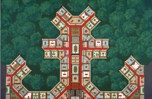 La curva en planta refleja el contorno de la ubicación seleccionada a la hora de implantar el edificio.